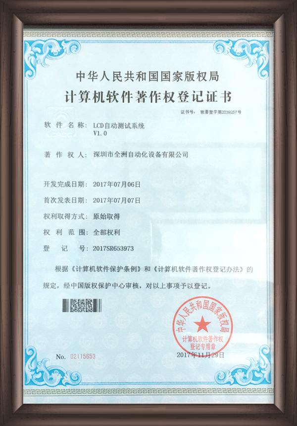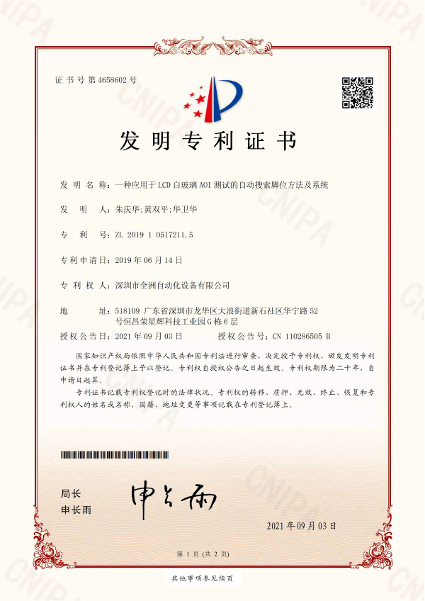 深圳市全洲自動(dòng)化設(shè)備有限公司是一家集研發(fā)、生產(chǎn)、銷(xiāo)售為一體的國(guó)家高新技術(shù)企業(yè),擁有一支強(qiáng)大、資深的技術(shù)研發(fā)團(tuán)隊(duì),及完善的生產(chǎn)、銷(xiāo)售服務(wù)隊(duì)伍。公司致力于LCD和半導(dǎo)體行業(yè)的智能制造,先后推出了全自動(dòng)貼片、裝腳、點(diǎn)膠、固化、切腳流水線,全自動(dòng)LCD AOI測(cè)試機(jī)、COG/COB自動(dòng)AOI測(cè)試機(jī)、TFT多畫(huà)面測(cè)試機(jī)。并破解行業(yè)難題,研發(fā)了分辨率達(dá)微米級(jí)的LCD整模圖像檢測(cè)機(jī)等高端設(shè)備,可應(yīng)用于LCD/TFT/集成電路/晶圓檢測(cè)等領(lǐng)域,有效提升生產(chǎn)和測(cè)試效率,保障產(chǎn)品品質(zhì)。受到了新老客戶(hù)的歡迎和好評(píng),與業(yè)內(nèi)眾多知名企業(yè)建立了長(zhǎng)期合作伙伴關(guān)系。公司秉承“誠(chéng)信經(jīng)營(yíng)、科技創(chuàng)新”的經(jīng)營(yíng)理念和“團(tuán)結(jié)、合作、進(jìn)取”的企業(yè)精神,竭誠(chéng)為客戶(hù)提供優(yōu)質(zhì)的產(chǎn)品,完善的技術(shù)服務(wù)!讓我們攜手,互利雙贏,共同發(fā)展,一起邁向企業(yè)美好的新未來(lái)、新坐標(biāo)!